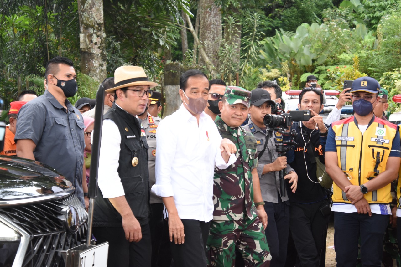 Gerbang Media Nasional Laporan : M Taufik CIANJUR, GMN – Presiden Republik Indonesia meninjau secara langsung Lokasi gempa yang terjadi Jalan Raya cugenang Kabupaten Cianjur pada Selasa siang, 22 November 2021. Yang mana dalam peninjauan yang di lakukan presiden RI Joko widodo, turut di hadiri juga oleh Gubernur Jabar Ridwan Kamil, Pangkostrad Dudung Abdurachman, Kapolda Jabar Irjen Pol Drs. Suntana M. Si, Pangdam III Siliwangi Mayjen TNI Kunto Arif Wibowo, Kapolres Bogor AKBP Dr. Iman Imanuddin S.H., S.I.K., M.H dan Dandim 0621 Kabupaten Bogor Letkol Kav Gan Gan Rusgandara. Jalan raya yang menjadi penghubung antara Cianjur dan Bogor tersebut sempat terputus akibat tanah longsor yang terjadi hingga menutupi akses jalan pasca terjadinya gempa pada Senin siang (21/11) Dalam peninjauan ke lokasi bencana Presiden Joko Widodo mengatakan bahwa atas nama pribadi, atas nama Saya ingin menyampaikan duka cita yang mendalam belasungkawa atas terjadinya musibah gempa bumi di Kabupaten Cianjur. Saya menginstruksikan seluruh jajaran untuk bekerja sama dalam membantu penanganan pasca gempa bumi yang terjadi di Kabupaten Cianjur. Mulai dari pembukaan akses jalan yang terkena longsor hingga evakuasi dan penyelamatan korban-korban yang masih tertimbun longsor. Selain itu, Presiden memastikan bahwa pemerintah akan memberikan bantuan kepada warga yang rumahnya terdampak gempa bumi. Bantuan tersebut terdiri atas Rp50 juta untuk rumah yang mengalami kerusakan berat, Rp25 juta untuk rumah yang mengalami kerusakan sedang, dan Rp10 juta untuk rumah yang mengalami kerusakan ringan, ungkapnya. Post navigation Pendistribusian Bantuan Kemanusiaan Dari Kapolri Dan Bhayangkari Peduli Untuk Korban Gempa Bumi Cianjur POLISI SALURKAN LOGISTIK KEPADA KORBAN GEMPA CIANJUR