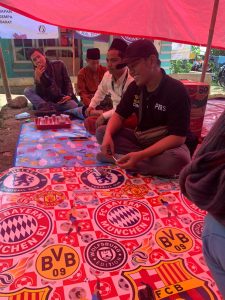Menurutnya dilokasi tersebut bertatap muka langsung dengan puluhan warga yang terdiri dari 2 RT, dengan jumlah penduduk sekitar 470 orang yang mengalami kerusakan rumah sekitar 50% sehingga tidak layak huni, sekaligus memberikan bantuan berupa beras, mie, minyak goreng, gula kopi/teh, biskuit, sepatu boot dan beberapa buah senter serta uang tunai.