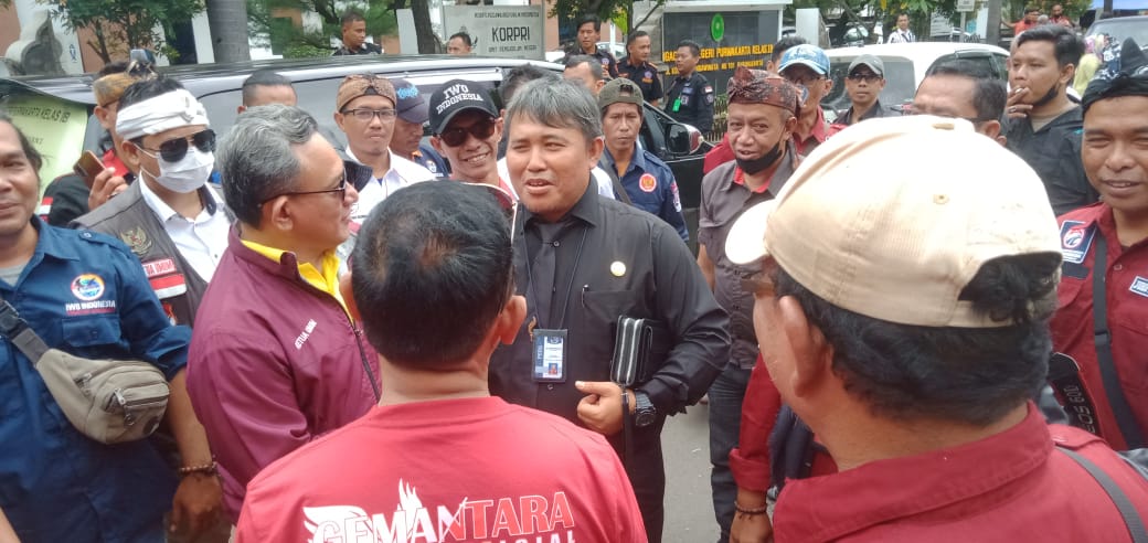 Untuk itu, sejumlah 100 orang dari berbagai profesi dan organisasi turun ke jalan melakukan aksi damai dan kawal Ketua Umum IWO Indonesia NR Icang Rahadian, S.H membela RENA (empat wartawan yakni Rido, Edi, Naser dan Agung) pada sidang perdana di depan Kantor Pengadilan Negeri Purwakarta, Rabu (25/1/2023).