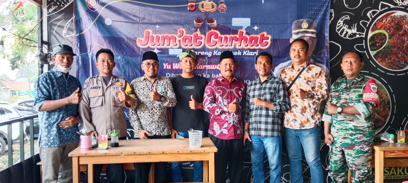 Karawang, GMN – Dalam upaya menampung aspirasi masyarakat, Polsek Klari tengah melaksanakan program Jumat Curhat bersama tokoh masyarakat , tokoh agama, tokoh pemuda Desa Pancawati di Rumah Makan Sate Kang Udin, Kecamatan Klari, Kabupaten Karawang, Jumat (13/1/2023).