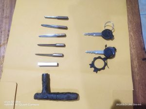 Aksi pelaku berinisial E berhasil digagalkan warga saat melakukan pencurian kendaraan sepeda motor Honda Beat yang terparkir di halaman teras kontrakan di wilayah kampung cipambuan, dalam melakukan aksinya pelaku melakukan perusakan terhadap kunci kontak sepeda motor dengan menggunakan kunci letter T. (27/1/2023)