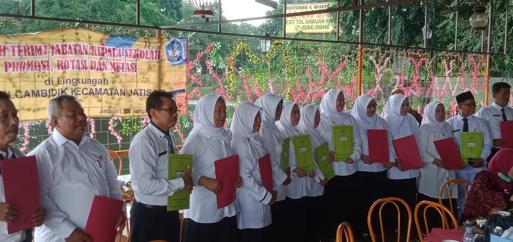 “Alhamdulilah, acara Sertijab ini berjalan lancar dan untuk rotasi ada 8 Kepala Sekolah, promosi ada 7 Kepala Sekolah,”kata Ketua Kelompok Kerja Kepala Sekolah (K3S) Kecamatan Jatisari Uyat kepada media.