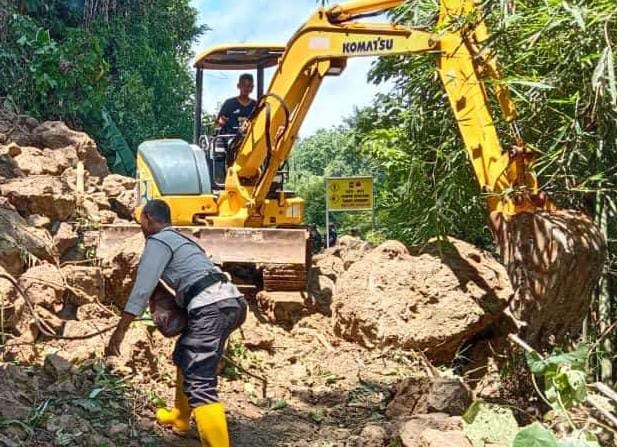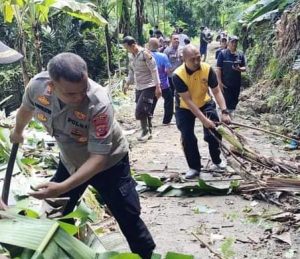 Polisi Cek Dan Bantu Evakuasi Material Longsor Menutupi Jalan Desa
