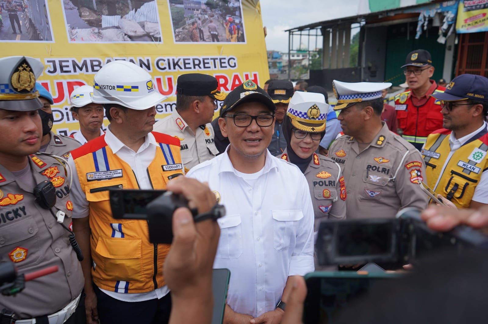“Kita sinergi ada dari PUPR, Korlantas, Polda Jabar, Polres dan Balai. Kita ingin ada satu langkah yang cepat, alhamdulillah informasi dari PUPR Pusat solusi jangka pendek hari ini akan dimulai pemasangan jembatan bailey yang diperuntukkan untuk satu jalur yang belum longsor. Mudah-mudahan dua minggu selesai, jadi masyarakat yang akan menggunakan, khususnya angkot mungkin dalam dua minggu bisa dilewati,” ujar Iwan Setiawan.