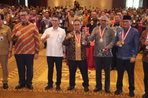 Gerbang Media Nasional Laporan : M Taufik JAKARTA, GMN – Pemerintah Kabupaten (Pemkab) Bogor meraih juara tiga pelaksanaan Standar Pelayanan Minimal (SPM) terbaik pada tahun anggaran 2022 tingkat nasional. Penghargaan diberikan langsung oleh Wakil Menteri Dalam Negeri (Wamendagri) Republik Indonesia, John Wempi Wetipo kepada Asisten Pemerintahan dan Kesejahteraan rakyat (Aspem Kesra) Kabupaten Bogor, Hadijana, yang mewakili Plt. Bupati Bogor. SPM Awards diselenggarakan Kementerian Dalam Negeri (Kemendagri) melalui Ditjen Bina Pembangunan Daerah, di Hotel Bidakara, Jakarta Selatan, Selasa, (21/03). Acara dihadiri oleh sejumlah Kementerian/Lembaga dan sejumlah Pemerintah Daerah se-Indonesia. Untuk kategori kabupaten terbaik dalam menerapkan SPM tahun anggaran 2022, tiga terbaik diberikan kepada Kabupaten Karanganyar sebagai juara pertama, Kabupaten Soppeng sebagai juara kedua, dan Kabupaten Bogor juara ketiga. Untuk diketahui, Standar Pelayanan Minimal (SPM) merupakan ketentuan mengenai jenis pelayanan dasar dan mutu pelayanan dasar yang berhak diperoleh setiap warga negara secara minimal untuk memberikan pelayanan publik secara maksimal kepada masyarakat yang berorientasi terhadap terwujudnya pelayanan publik yang prima. Dari 32 urusan pemerintahan, ada 6 urusan wajib pelayanan dasar SPM, yaitu pendidikan, kesehatan, pekerjaan umum, perumahan rakyat, ketenteraman dan ketertiban umum serta perlindungan masyarakat, dan sosial. Atas prestasi tersebut, di tempat terpisah, Plt. Bupati Bogor, Iwan Setiawan mengungkapkan, alhamdulillah tahun ini pemerintah dan masyarakat Kabupaten Bogor meraih keberkahan, bahwa kita sudah berikhtiar serta berusaha keras, meraih penghargaan SPM ini. “Pada penghargaan SPM Awards ini kita meraih peringkat terbaik ketiga se-Indonesia. Jumlah penduduk Kabupaten Bogor itu sangat banyak, dan kita dinilai sudah berhasil melaksanakan Standar Pelayanan Minimal terhadap masyarakat,” ungkap Iwan Setiawan. Iwan Setiawan berharap, ke depan kita harus bisa lebih meningkatkan lagi, lebih baik lagi dalam memberikan layanan kepada masyarakat. Utamanya pada enam urusan wajib pelayanan dasar. Wakil Menteri Dalam Negeri (Wamendagri) Republik Indonesia, John Wempi Wetipo mengungkapkan, SPM Awards 2023 merupakan bentuk penghargaan yang diberikan Pemerintah Pusat kepada Pemerintah Daerah yang berkinerja terbaik, dalam menerapkan SPM kepada 3 Provinsi, 3 Kabupaten dan 3 Kota se-Indonesia. “Dalam penerapan SPM, jajaran Pemerintah Daerah (Pemda) mempunyai peran yang sangat penting. 6 pelayanan dasar urusan wajib yang diserahkan pusat ke daerah dapat dirasakan manfaatnya oleh masyarakat,” kata John Wempi Wetipo. Dirjen Bina Pembangunan Daerah, Restuardy Daud menambahkan bahwa, tujuan diadakan SPM Awards 2023 ini untuk meningkatkan komitmen Kepala Daerah dalam menjalankan urusan wajib yang berkaitan dengan pelayanan dasar dan mendorong Penerapan SPM di daerah dilaksanakan secara optimal. Trennya meningkat dari waktu ke waktu dalam empat tahun terakhir. “Adapun indikator yang menjadi penilaian SPM Awards 2023 yakni Indeks Pencapaian SPM (IP-SPM), Komitmen Anggaran penerapan SPM, pelaksanaan sesuai dengan tahapan-tahapan dalam penerapan SPM, pembentukan dan keaktifan tim penerapan SPM, dan kualitas dan ketaatan terhadap pelaporan SPM secara triwulanan pada aplikasi pelaporan SPM berbasis web (e-SPM),” ujar Restuardy. Post navigation Kabupaten Bogor Terbaik Kedua Pada Tata Kelola Sekretariat CSR Di Jawa Barat Plt. Bupati Bogor Iwan Setiawan Harap, Kehadiran Hotel Diara Cileungsi Dapat Mendorong Peningkatan PAD di Wilayah Cileungsi