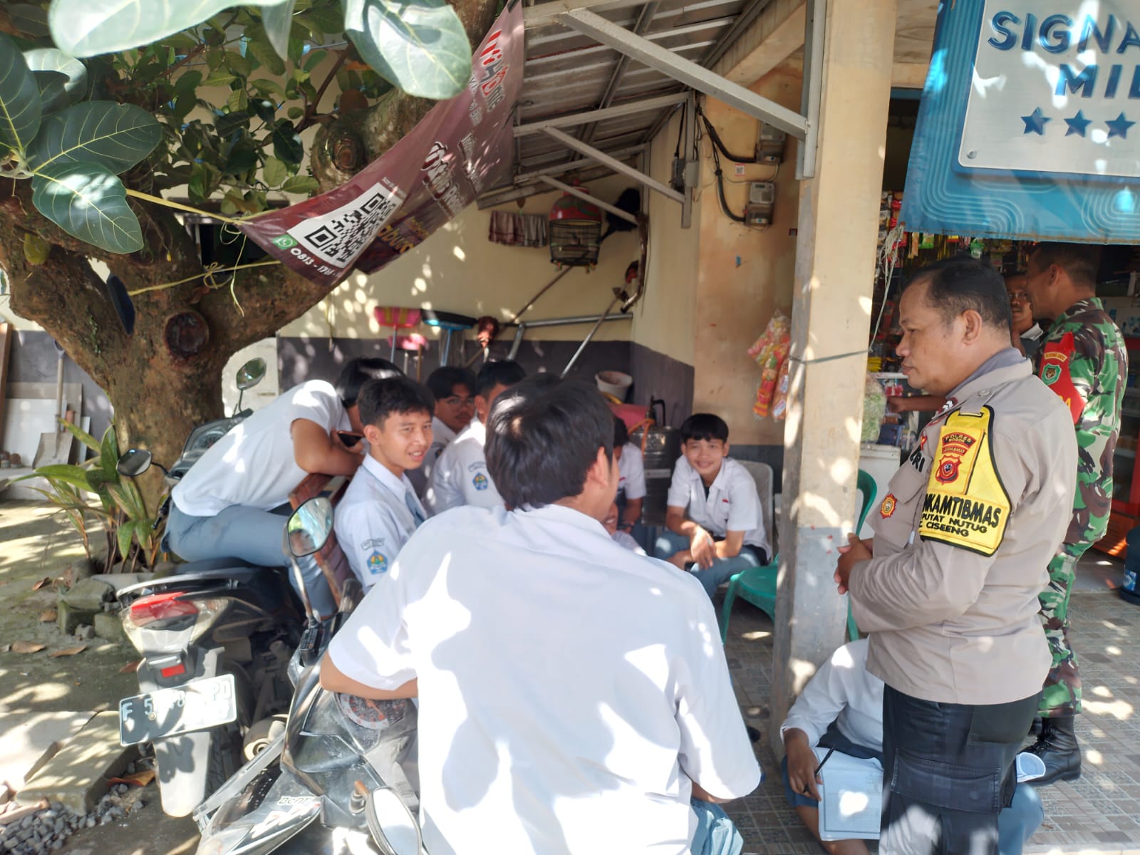 BOGOR, GERBANG MEDIA NASIONAL -lBhabinkamtibmas Desa Putat nutug Polsek Parung, Aiptu R. Tenten Saenudin bersama Babinsa Peltu Arie Noerdianto, menyambangi anak-anak pelajar SMA yang sedang kumpul kumpul di lokasi Kios / warung. Rabu (29/03/2023) Kegiatan tersebut dilaksanakan oleh Bhabinkamtibmas Polsek Parung Polres Bogor dengan tujuan untuk memberikan himbauan dan pemahaman kepada para anak-anak pelajar yang sering nongkrong / kumpul kumpul, terutama di Bulan suci Ramadhan sehingga tidak mengarah kepada hal yang negatif. Hal ini akan sering dilaksanakan untuk menghindari terjadinya Tawuran pelajar, pemikiran yg negatip di luar Sekolah atau bahkan terjadinya tindak kejahatan yang mengganggu Kamtibmas di bulan suci Ramadhan. Polisi tak segan terus memberikan himbauan khususnya kepada para pelajar / pemuda yang sedang kumpul kumpul / nongkrong. Dikesempatan ini Bhabinkamtibmas memberikan pesan pesan kamtibmas agar para pelajar juga ikut mendukung tugas Polri yang salah satunya menjaga dan memelihara keamanan dan ketertiban masyarakat (Harkamtibmas) di wilayah di tempat tinggal masing-masing. Peran aktif bhabinkamtibmas dalam hal ini sangat di butuhkan agar para pelajar dapat kiranya menerima wawasan tentang hukum yang berlaku sehingga dapat dijadikan pedoman dalam pergaulan sehari hari. Di tempat terpisah Kapolsek Parung Kompol Sularso SH kegiatan tersebut rutin dilakukan oleh Bhabinkamtibmas Polsek Parung terutama di bulan suci Ramadhan untuk mencegah Tawuran remaja / pelajar dan kejahatan lainnya. Peran aktif masyarakat sangat di perlukan dalam menjaga keamanan desa untuk mendukung tugas Bhabinkamtibmas dalam menciptakan situasi kamtibmas yang aman dan damai. (Djuhari) Post navigation Jaga Kondusifitas Saat Ramadhan, Sat Binmas Polres Bogor Gencarkan Ops Miras Polsek Sukamakmur Polres Bogor Berikan Himbauan Kamtibmas Dengan Menyambangi Masyarakat Sukamakmur