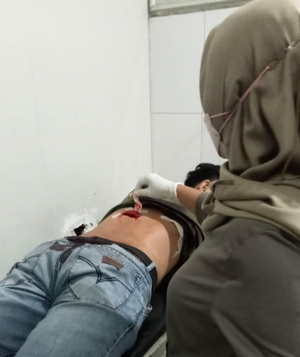 “Saya tidak tahu kalau kena tusuk, karena ada warga yang memberitahu kalau ada darah yang mengucur dipunggung, lantas dengan serta merta saya menuju RS Trimitra Untuk segera mendapatkan Pengobatan, saya mendapatkan tindakan pengobatan hampir 2 jam, selanjutnya saya pulang dijemput abang saya dan teman teman dari Relawan MRC, “cerita Rahmat Satria Kepada awak media.