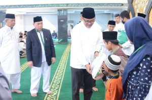 BOGOR, GERBANG MEDIA NASIONAL – Plt. Bupati Bogor, Iwan Setiawan mengajak seluruh masyarakat untuk menjadikan Nuzulul Qur’an 1444 Hijriyah sebagai momentum mengaktualisasi nilai-nilai Al’Quran dalam setiap gerak dan langkah kita. Hal ini diungkapkannya saat menghadiri peringatan Nuzulul Qur’an tingkat Kabupaten Bogor, di Masjid Agung Baitul Faizin, Cibinong, Jumat (7/4/23). Pada kesempatan tersebut, Plt. Bupati Bogor juga menyerahkan santunan secara simbolis kepada anak-anak yatim yang mewakili 40 kecamatan se-Kabupaten Bogor. Hadir pada kegiatan tersebut, Sekretaris Daerah Kabupaten Bogor, Burhanudin, Ketua Tim Penggerak PKK Kabupaten Bogor, Halimatu Sadiyah Iwan, perwakilan Forkopimda Kabupaten Bogor, Direksi BUMD, Direktur RSUD, organisasi keagamaan, organisasi wanita, alim ulama, tokoh masyarakat, serta para Camat, dan jajaran Pemerintah Kabupaten (Pemkab) Bogor. Iwan Setiawan menjelaskan, setiap tanggal 17 Ramadhan, umat muslim memperingati Nuzulul Qur’an. Pemkab Bogor senantiasa mendukung kegiatan keagamaan sebagai pengamalan dari program Pancakarsa yakni Bogor Berkeadaban. Alhamdulillah, selama ini Pemkab Bogor secara konsisten mendukung kegiatan dakwah dan syiar Islam serta melaksanakan berbagai program keumatan dalam Karsa Bogor Berkeadaban. “Mari kita jadikan momentum peringatan Nuzulul Qur`an 1444 Hijriyah, untuk mengaktualisasikan nilai-nilai Al Qur’an dalam setiap gerak dan langkah kita,” tandas Iwan Setiawan. Iwan mengungkapkan, semoga kita mampu memahami serta memaknai momen Nuzulul Qur’an ini dengan semangat peningkatan amal ibadah dan semoga kita mampu meraih segala kebaikan dan keberkahan di bulan suci Ramadhan ini. Ketua Panitia Peringatan Nuzulul Qur’an, KH. Lesmana yang juga Ketua Baznas Kabupaten Bogor menuturkan, acara peringatan Nuzulul Quran tidak lain juga sebagai ajang motivasi kita untuk semakin mempertebal keimanan dan keyakinan terhadap Allah SWT. Melalui firman-firman-Nya, Allah telah menunjukkan jalan yang baik dan benar. “Baznas Kabupaten Bogor memberikan santunan uang tunai dan paket sembako kepada 400 anak yatim, dimana setiap kecamatan mengirimkan 10 orang anak yatim,” kata Lesmana. Ia menambahkan, peringatan Nuzulul Qur’an tingkat Kabupaten Bogor tahun ini terselenggara atas kerjasama Pemda Kabupaten Bogor, Baznas Kabupaten Bogor dan DKM Masjid Agung Baitul Faizin. “Terima kasih kepada seluruh pihak yang telah mendukung terselenggaranya acara Nuzulul Quran tingkat Kabupaten Bogor, baik dari anggota panitia, aparat setempat, para donatur, serta hadirin semua yang turut serta menghadiri acara ini,” ujar KH. Lesmana. (Humas/Djuhari) Post navigation Antisipasi Konflik Tanah di Kabupaten Bogor, Pemkab Bogor Perkuat Sinergi Dengan Forkopimda Lagi-Lagi Respon Cepat Kepolisian Berhasil Menggagalkan Rencana Para Remaja Yang Diduga Akan Melakukan Tawuran Di Wilayah Hukum Kabupaten Bogor