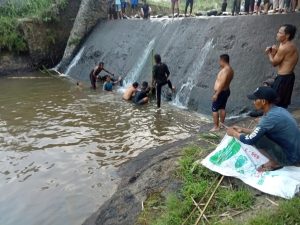 Warga sekitar yang mengetahui kejadian tersebut pun langsung berdatangan ke lokasi kejadian untuk memberikan pertolongan pada korban dengan cara menutup bendungan hingga surut, dan pada akhirnya korban pun dapat di temukan oleh warga sekitar pukul 16.30 wib dengan kondisi sudah meninggal dunia.