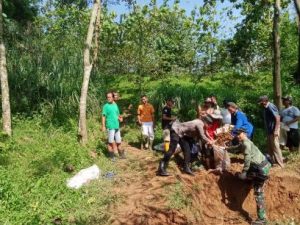 Terkait kejadian tersebut Bhabinkamtibmas Polsek Jonggol bersama Bahabinsa dan warga pun bersama-sama melakukan penanganan dengan bergotong royong menutup saluran irigasi yang alami longsor.