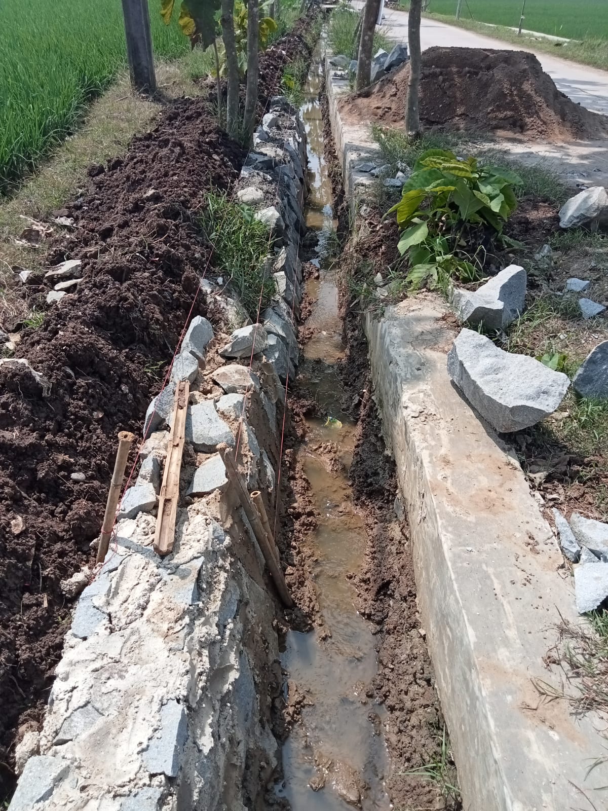 Gerbang Media Nasional Lapora : Arman & Dede.s Karawang,GMN – Proyek pembangunan saluran air (Drainase) di Dusun Kepuh RT 02 RW 03 Desa Citarik Kabupaten Karawang diduga telah menyimpang dari rencana anggaran pembelanjaan pembangunan, Pasal nya pekerjaan yang di Danai oleh Dana desa tersebut terpantau di lokasi pekerjaan tidak terlihat nya ada papan proyek, hal ini merupakan pembangkangan terhadap undang undang nomor 14 tahun 2008 tentang menimbulkan informasi publik. Kemudian dari pada itu terlihat juga dari hasil pekerjaan diduga sengaja dibuat dengan mengurangi volume,terpantau galian pasangan batu sangat dangkal. Batu kali yang di pasang pada bagian dasar hanya selapis kemudian untuk mengkelabui masyarakat batu pasang pada bagian atas dan di terapkan dua lapis sehinga jika dilihat pasangan batu seolah olah pasangan batu sesuai dengan gambar rencana pembangunan. Tidak ada yang dapat diminta keterangan terkait dengan teknik pekerjaan karena tidak terlihat adanya aktivitas di lokasi pekerjaan. Menurut salah seorang warga yang tinggal dekat lokasi pekerjaan mengatakan sudah 2 hari ini tidak ada yang bekerja.” Sudah dua hari libur pa, pekerjanya semua orang sini pa (setempat)” jelas nya Kepala desa Citarik Ahmad Wijaya SH belum dapat di temui untuk di minta keterangannya. Post navigation Dorong Kemang Jadi Kampung Batik, Pemkab Bogor Bersama Dekranasda Bekali Masyarakat Keterampilan Membatik H.Maslani Caleg DPR RI partai Nasdem ,peringati Milad ke 45 Hadirkan 2(Dua) Dalang Kondang