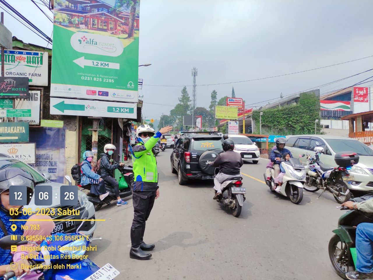 BOGOR, GERBANG MEDIA NASIONAL – Satuan Lalu Lintas Polres Bogor Polda Jabar dari mulai Hari Rabu Sampai Dengan Hari Minggu Esok sudah menyiapkan beberapa CB (Cara bertindak) untuk mengantisipasi kepadatan arus lalu lintas di Jalur Puncak Dalam Rangka Libur Panjang dan Weekend, diantaranya dengan menepatkan Personil sebanyak 89 Orang di titik-titik rawan kemacetan disepanjang jalur puncak dan menerapkan sistem GaGe dan One Way Baik Arah Arus Yang Keatas Puncak dan Arah Arus Balik ke Jakarta.