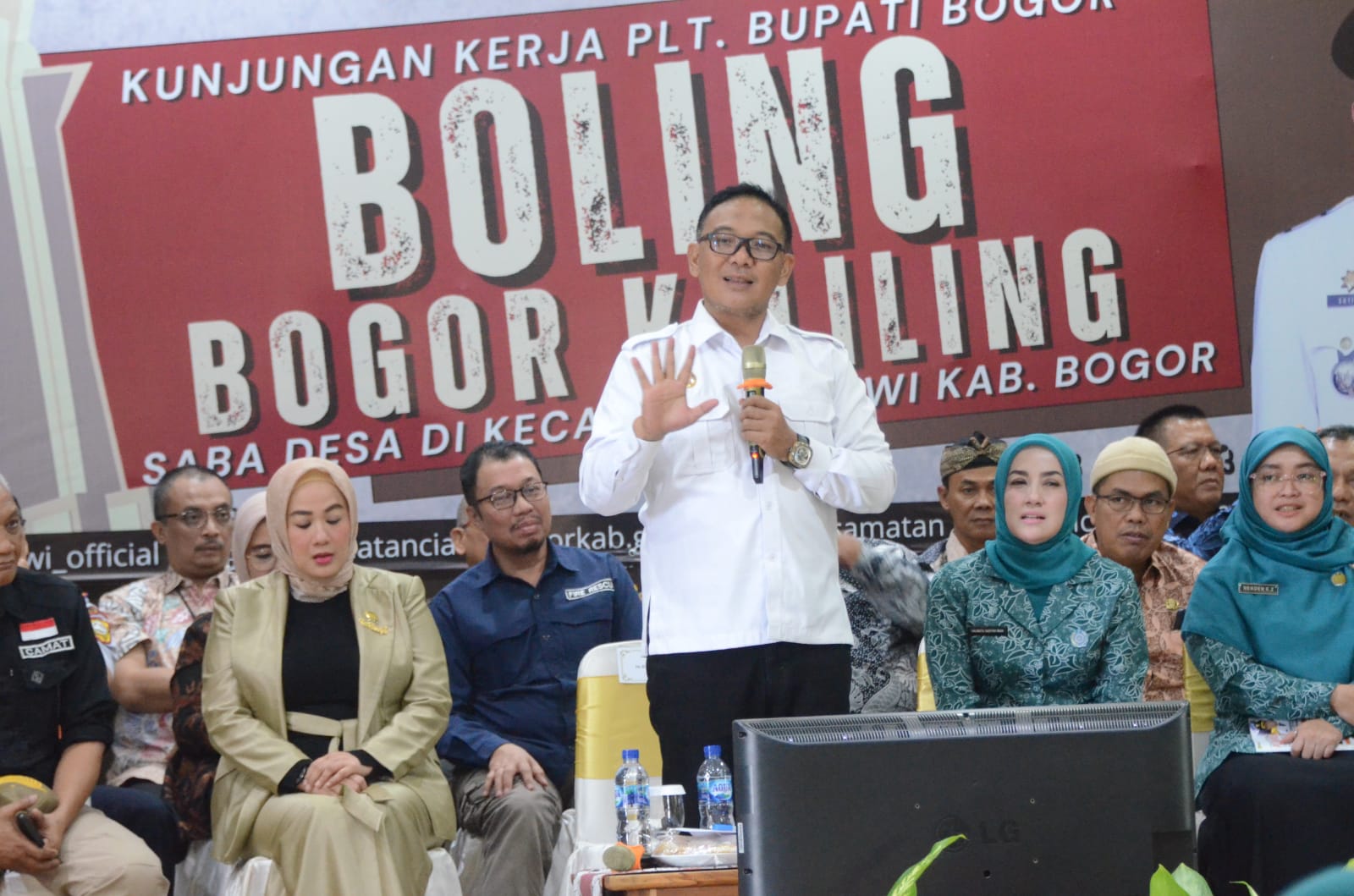 CIAWI_BOGOR, GERBANG MEDIA NASIONAL – Plt. Bupati Bogor Iwan Setiawan didampingi Ketua TP-PKK Kabupaten Bogor Halimatussadiyah Iwan lakukan kunjungan ke wilayah Kecamatan Ciawi melalui program Bogor Keliling (Boling) untuk melihat langsung hasil pembangunan di lima desa di Kecamatan Ciawi dan menyapa serta mendengar langsung aspirasi masyarakat Kecamatan Ciawi, Kamis (13/7/23).