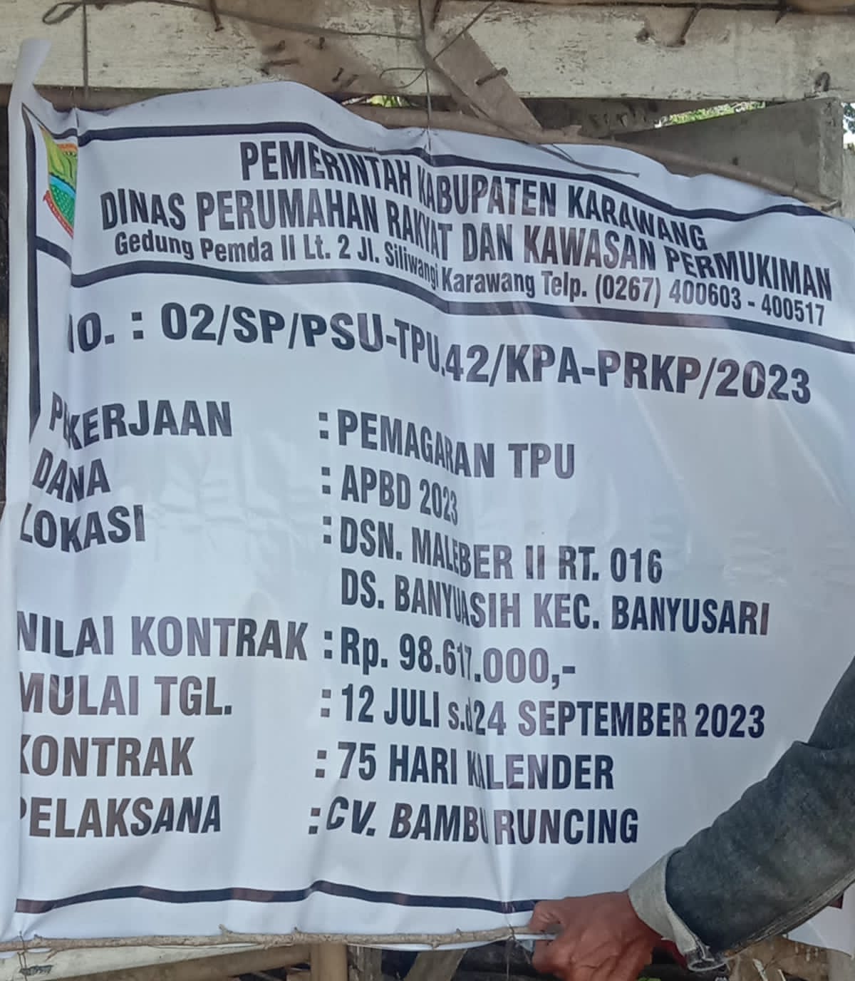 Pekerjaan pelaksanaan pemagaran tpu didusun maleber 2 desa banyuasih kecamatan banyusari yang dibiayai oleh Apbd tahun 2023 kabupaten karawang.melalui dinas PRKP dengan nilai anggaran 98.617.000.
