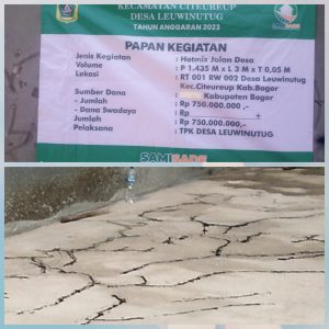 Diketahui jika pengerjaan jalan tersebut berasal dari Program Satu Miliar Satu Desa (Samisade) yang menelan anggaran mencapai Rp 250 juta diambil dari APBD Kabupaten Bogor.
