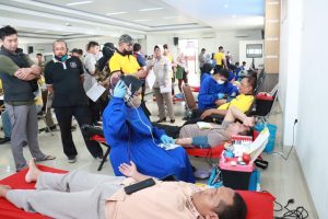 BOGOR, GERBANG MEDIA NASIONAL – SSDM Polri, Polda Jabar dan SDM Polda Jabar, bekerja sama dengan Palang Merah Indonesia (PMI) Kabupaten Bogor menggelar bhakti kesehatan berupa donor darah yang di gelar di Aula Sanika Satyawada Polres Bogor, Pada Jum’at pagi, 3 November 2023.