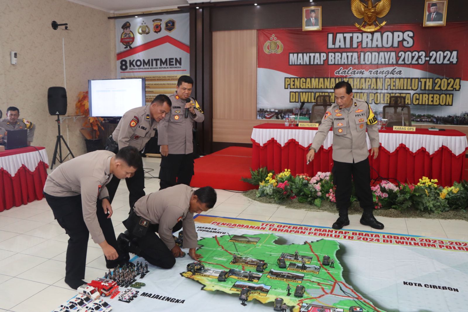 Jajaran Polresta Cirebon melaksanakan Latpraops Operasi Mantap Brata Lodaya 2023 – 2024, Kamis (2/11/2023). Kegiatan yang dilaksanakan dengan metode Tactical Floor Game (TFG) tersebut berlangsung di Aula Pesat Gatra Mapolresta Cirebon.