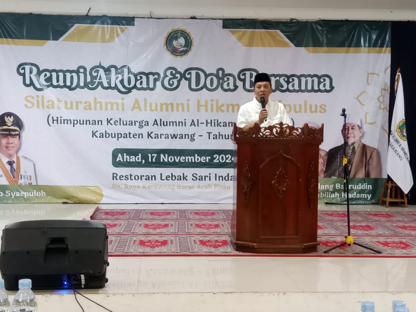 KARAWANG, GMN-Reuni Akbar dan doa bersama alumni Himpunan Keluarga Alumni Al-Hikamussalafiyah hari (HIKMAH) Cipulus digelar pada Minggu, 17 November 2024, di Restoran Lebak Sari Indah, Jl. Raya Karawang Barat, dekat pintu tol. Acara ini menjadi momen silaturahmi penting bagi para alumni pondok pesantren yang tersebar di berbagai daerah.