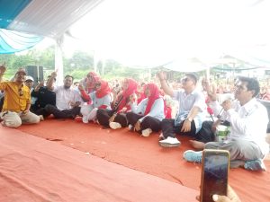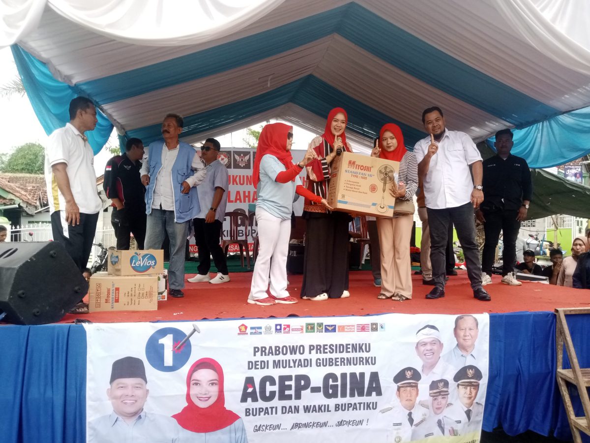 di tengah panasnya terik matahari Tak Mengurangi semangat warga dalam Kemeriahan Menyambut sang idolanya Paslon No 1 yang di jagokan untuk jadi pemenang dalam ajang kontestasi pilkada bupati Karawang,sambil membagikan dorprice”cawabup Gina padlia swara di dampingi H.ME Suparno Nampak menambah kehangatan suasana acara